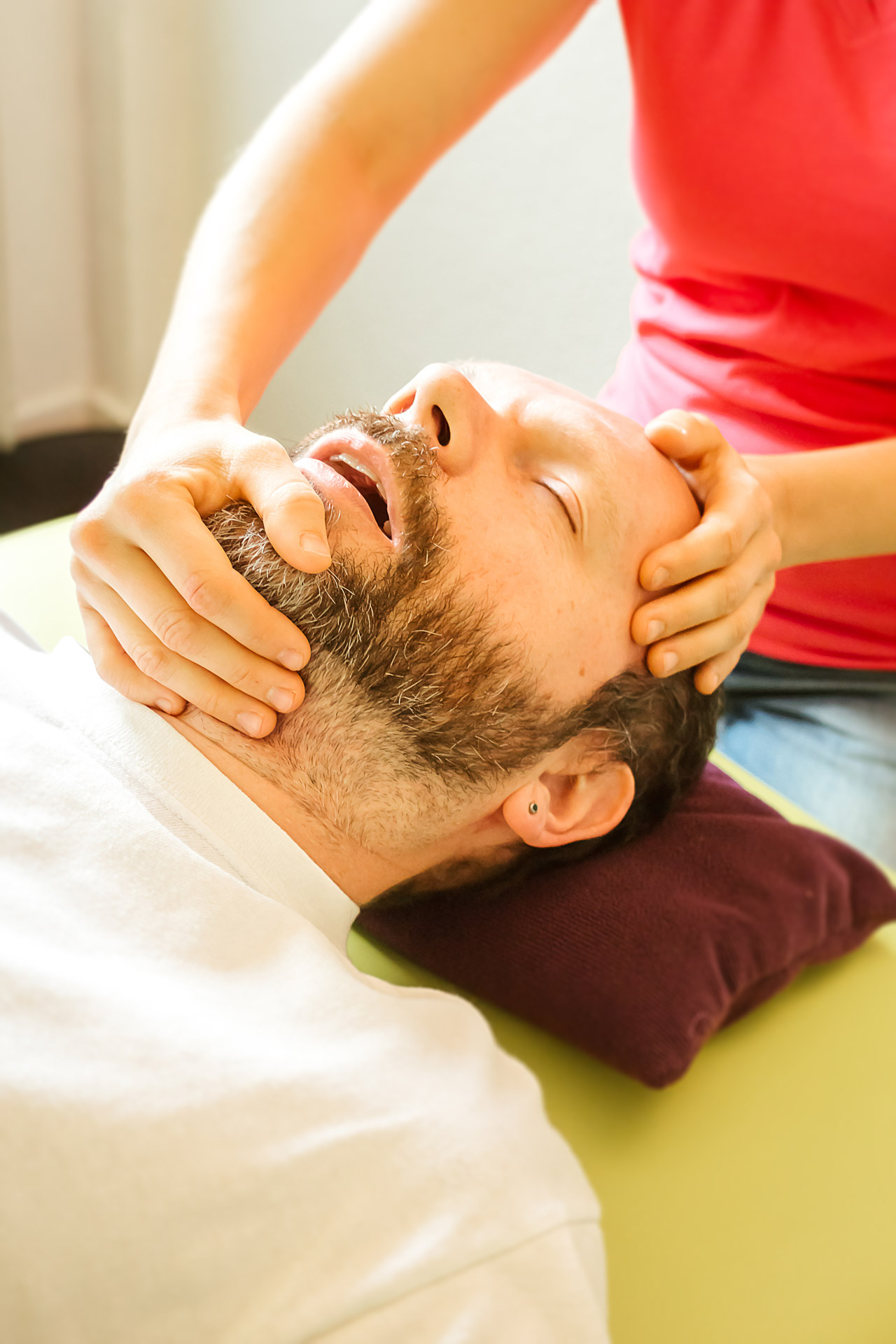Für uns gehören zur CMD-Behandlung auch die Therapie der Halswirbelsäule und des Schultergürtels dazu, da sie mit dem Kiefer eine funktionelle Einheit bilden.